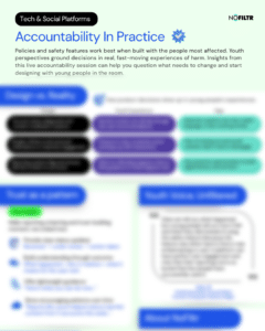 Our webinar series creates a space for direct engagement with the NoFiltr Youth Innovation Council, offering partners across tech, civil society, education, and caregiving sectors access to authentic youth perspectives on digital experiences. Each session is designed to be both insightful and interactive, providing practical, experience-based input that can inform product development, policy, and programming.